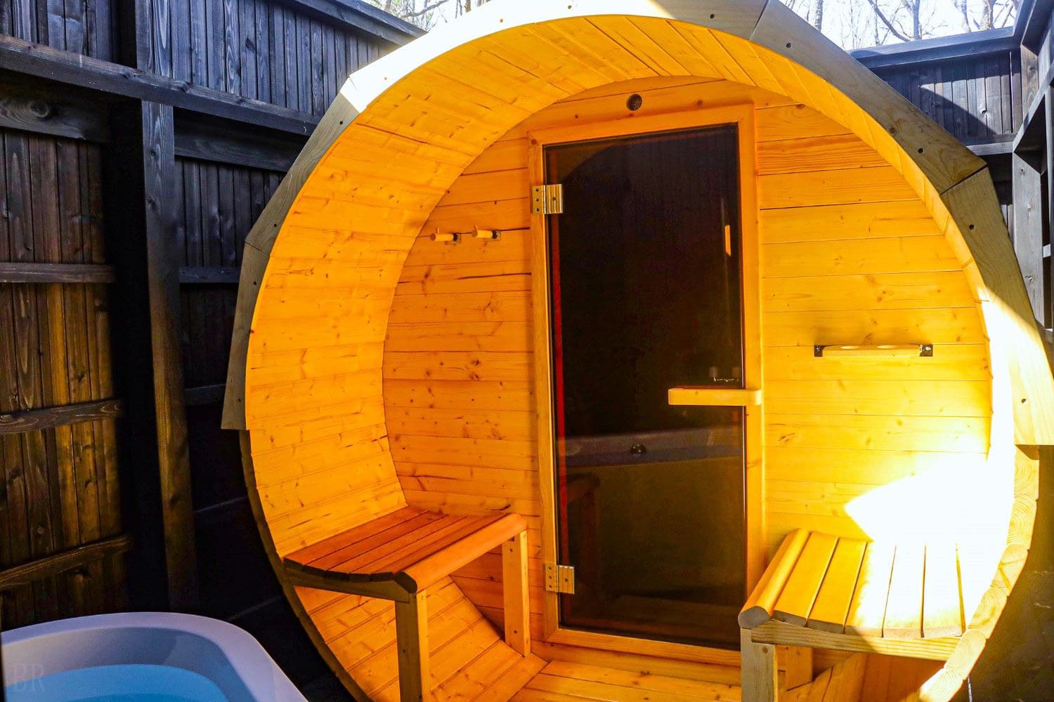 木の温もりあふれる丸太小屋型のバレルサウナは、自然の香りに包まれながら体の芯からじっくりと温めます。温度は絶妙に調整されており、初心者の方も安心してご利用いただけます。